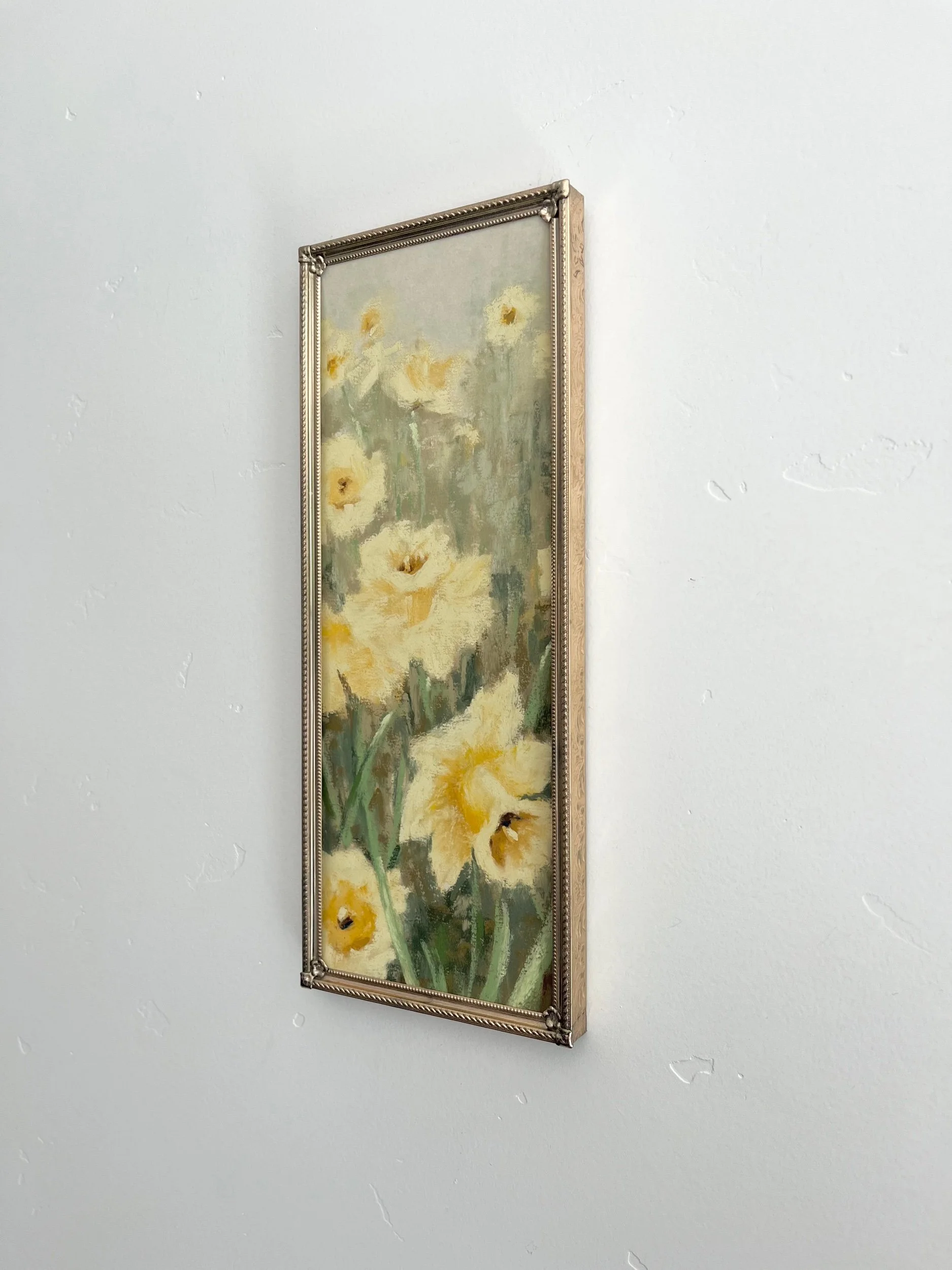 Original soft pastel painting on sanded pastel paper in a vintage brass frame with floral details on the sides.