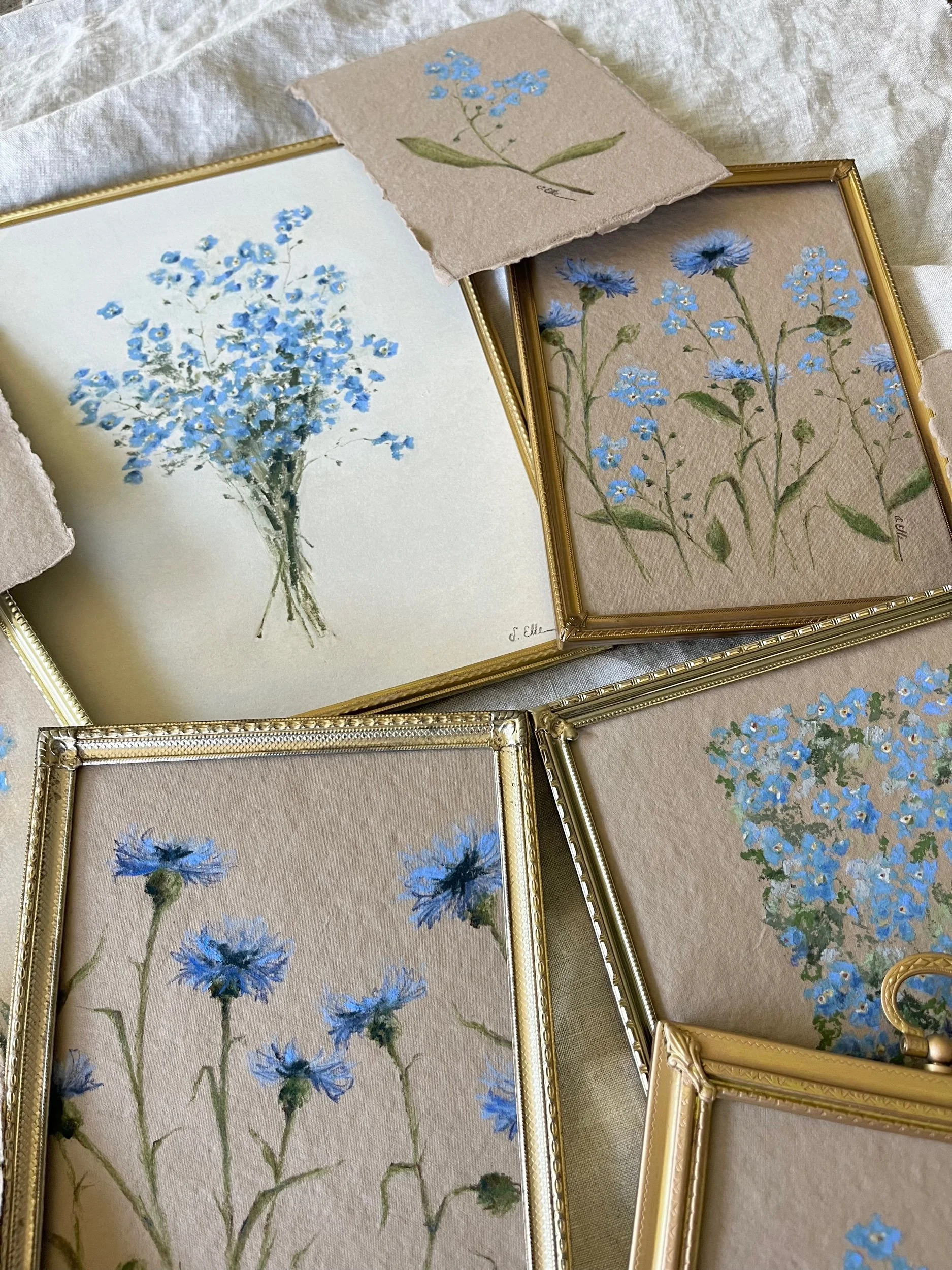 Original soft pastel floral on archival sanded paper in a vintage frame.