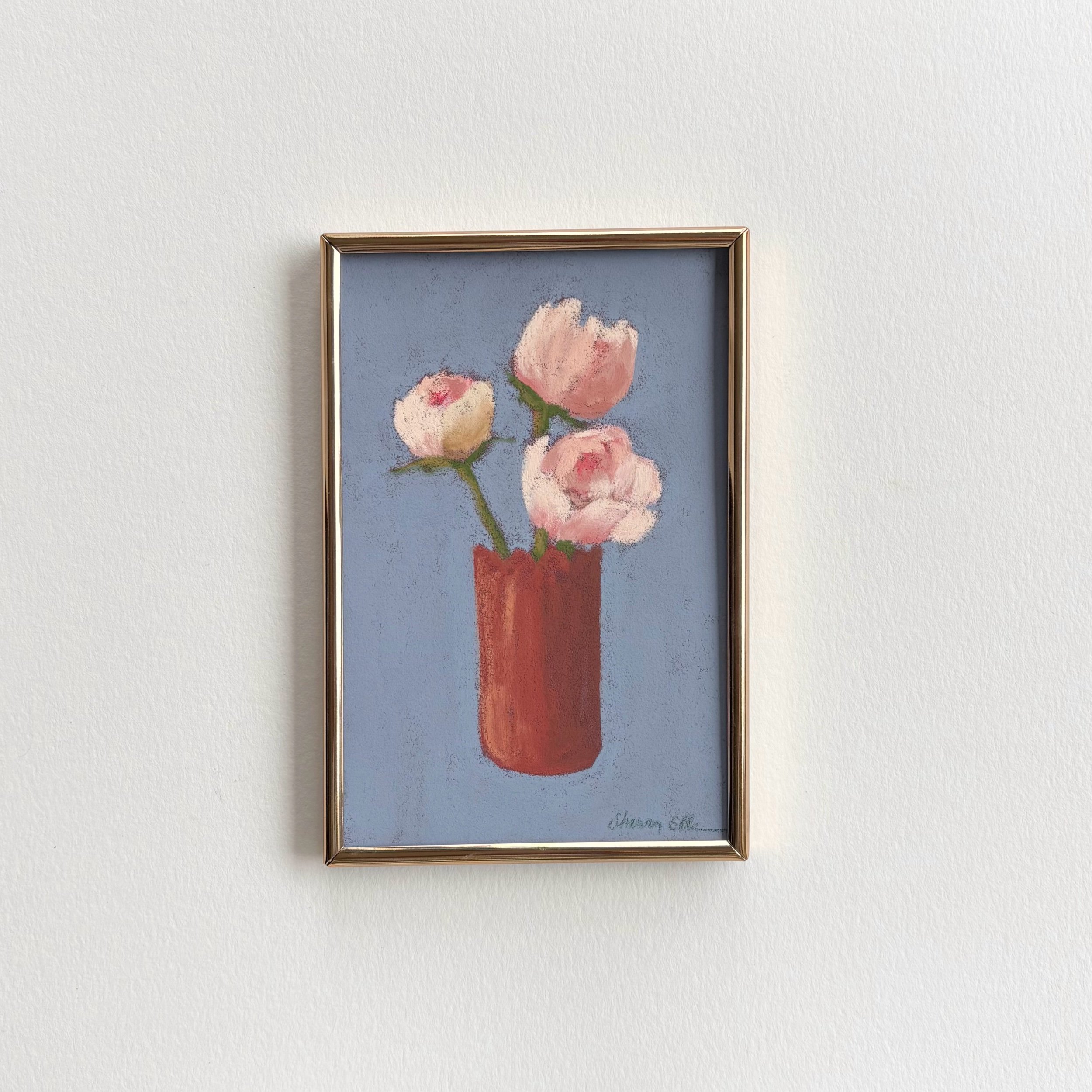Original 4×6 inch soft pastel drawing on pastel paper in a gold metal frame.