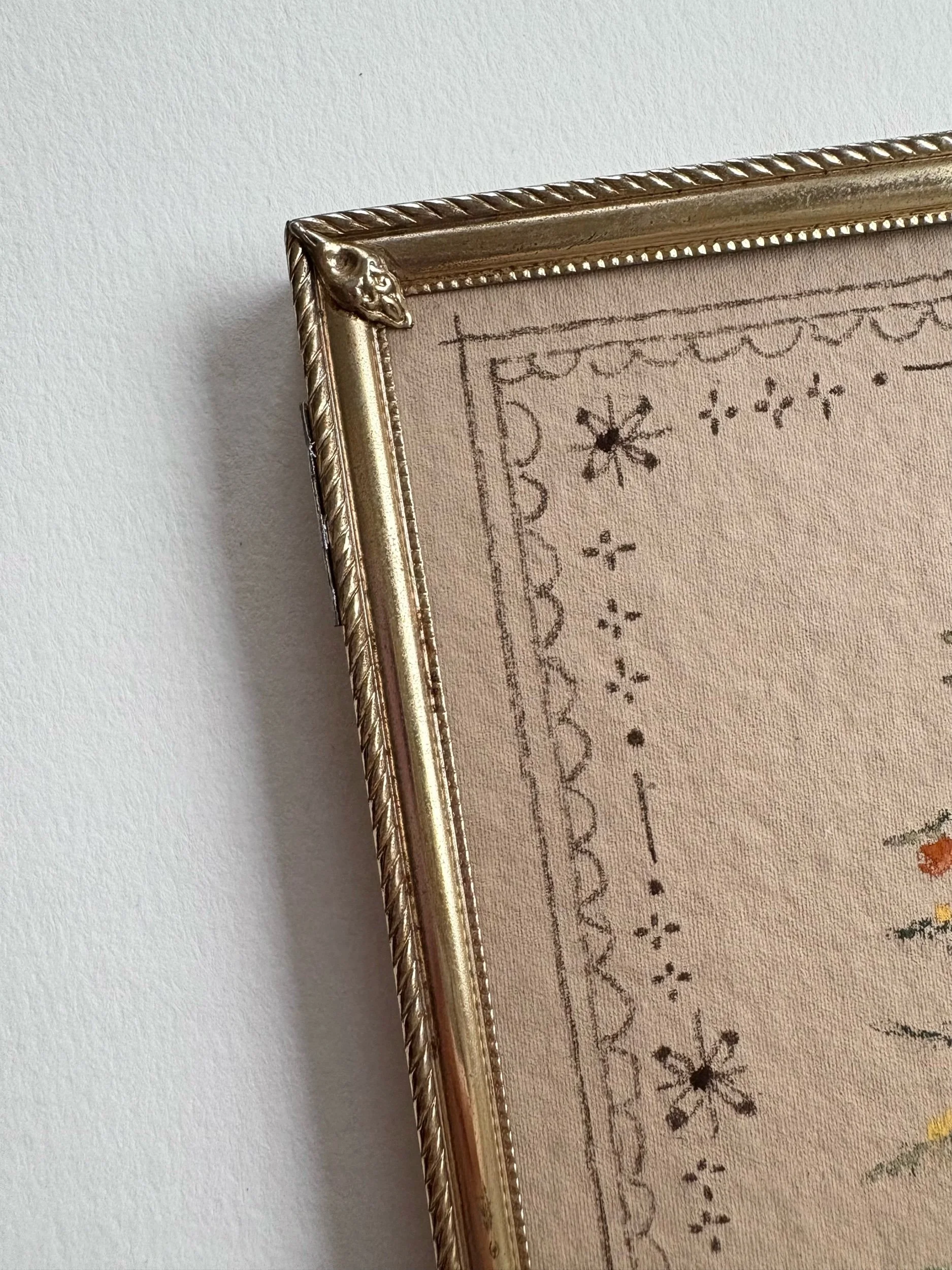 Original soft pastel drawing on handmade cotton paper in a vintage brass frame.