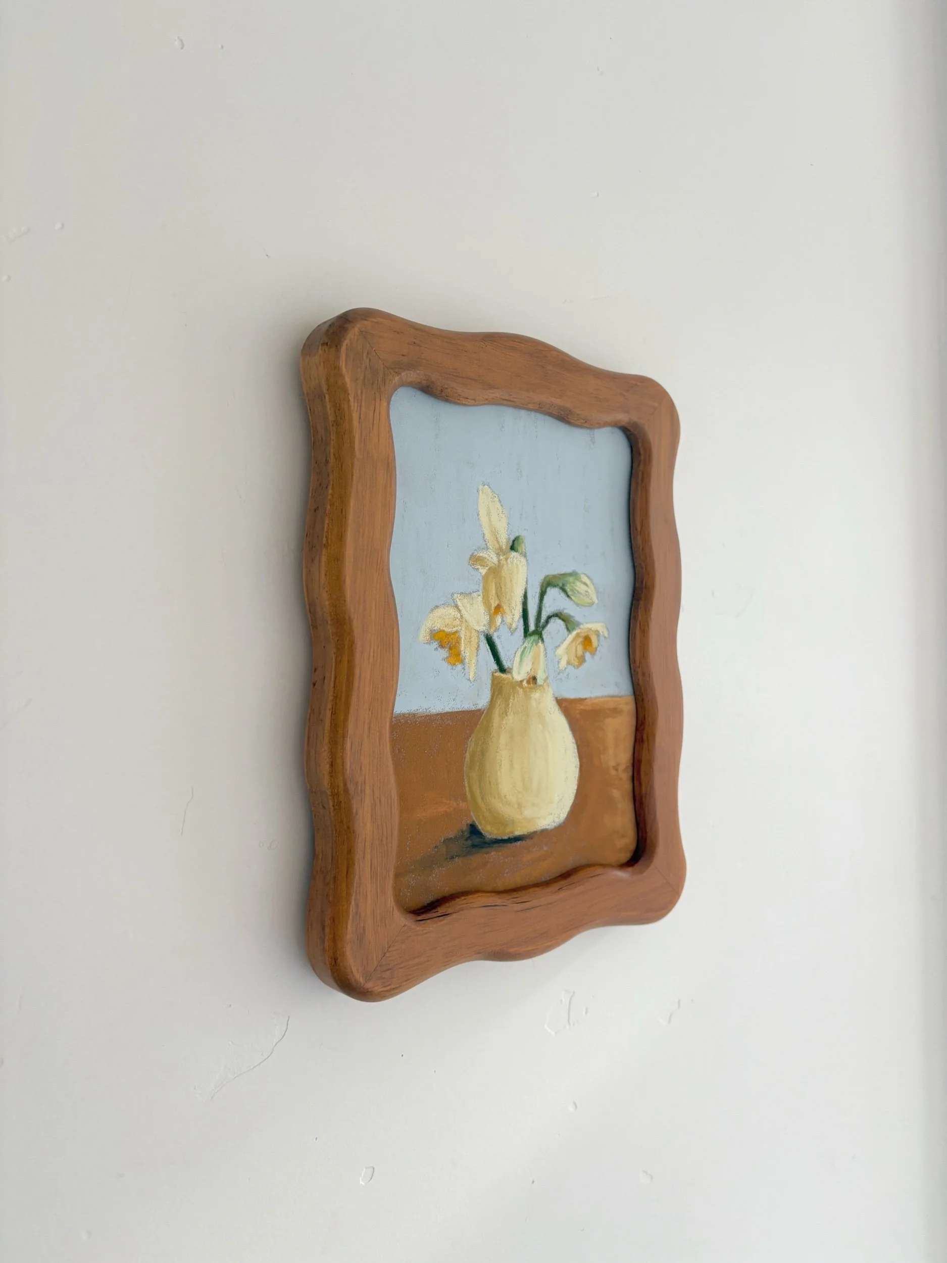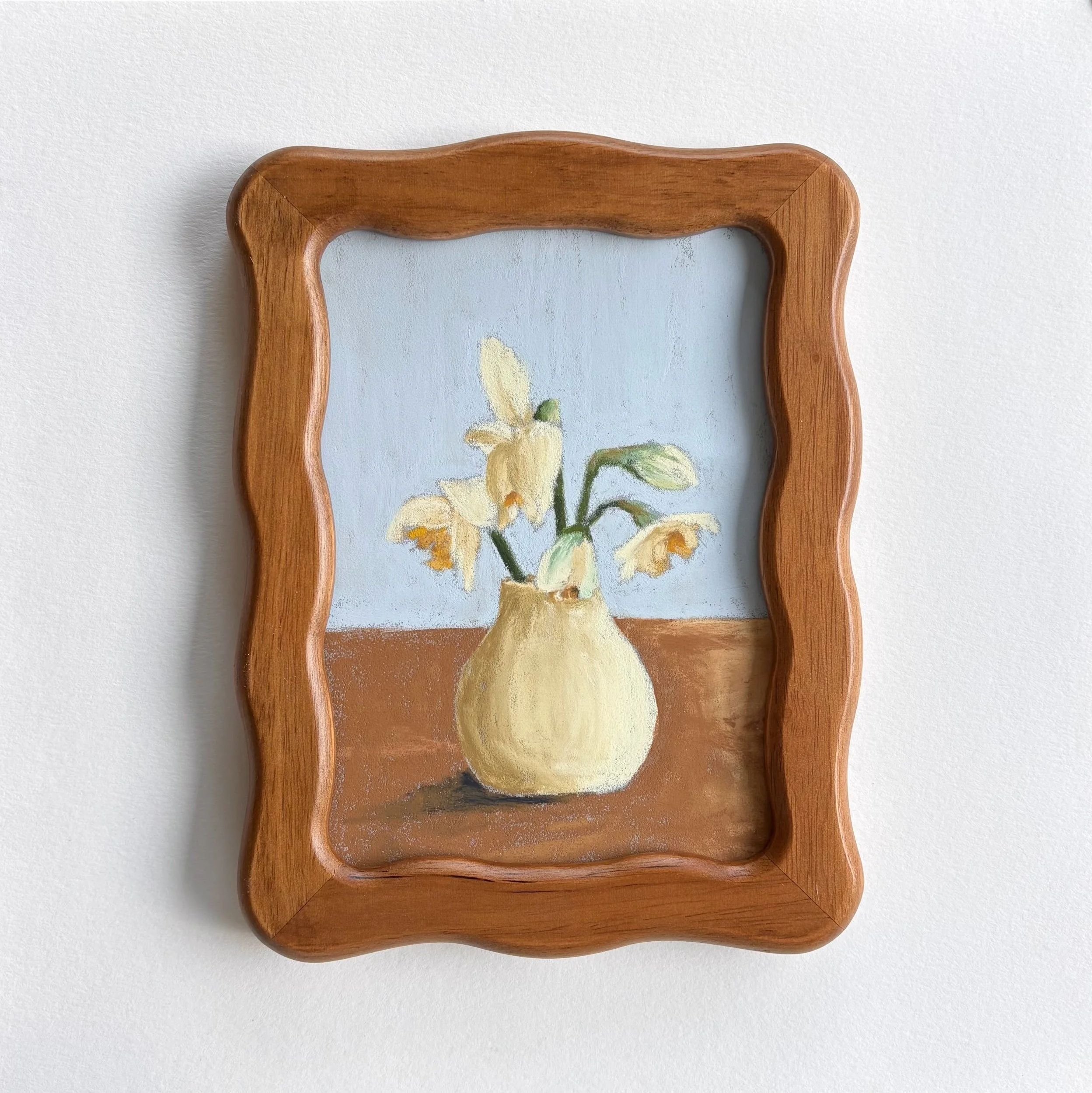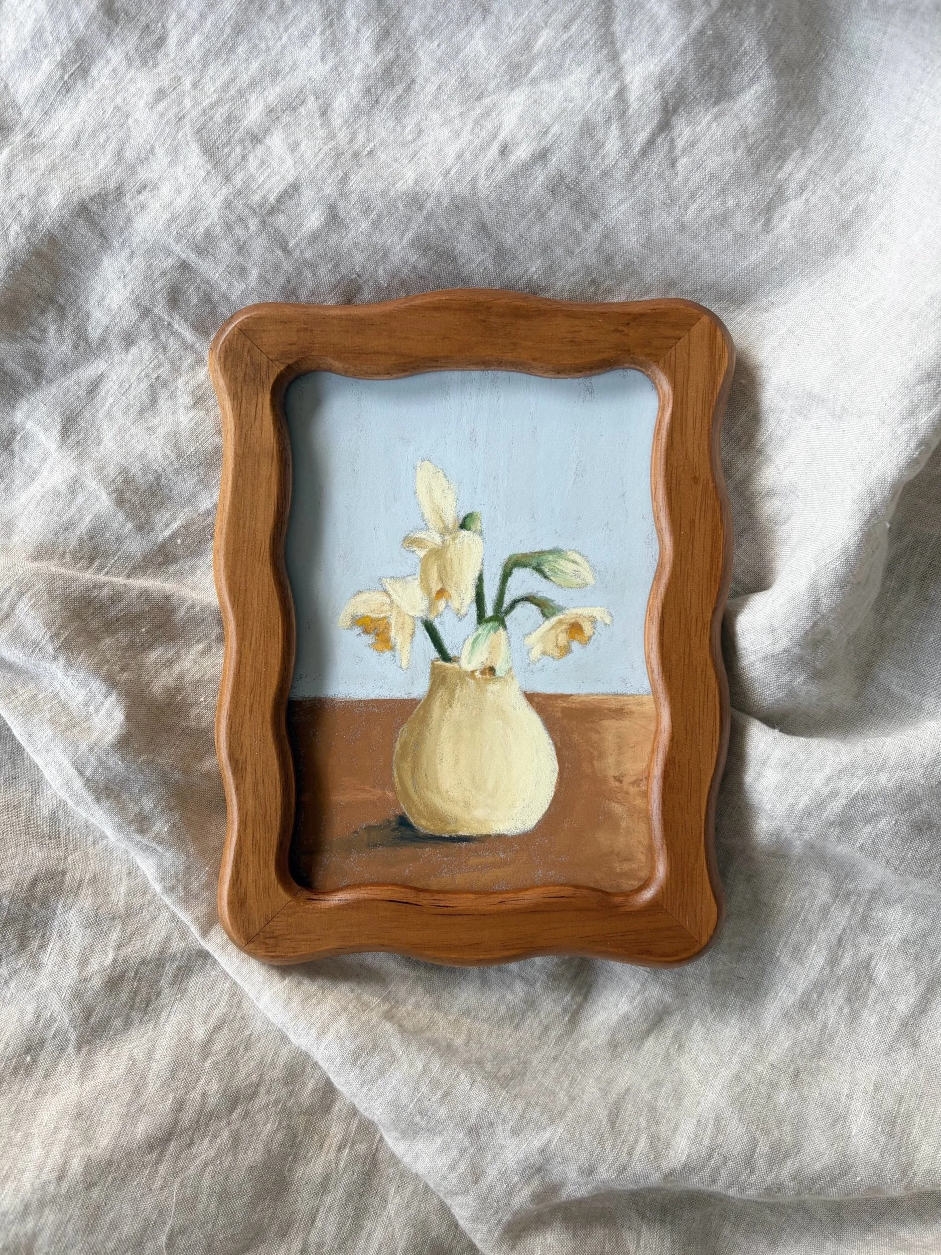 The art is 5×7” and the frame comes ready to hang. The artist’s signature will be on the front and back.