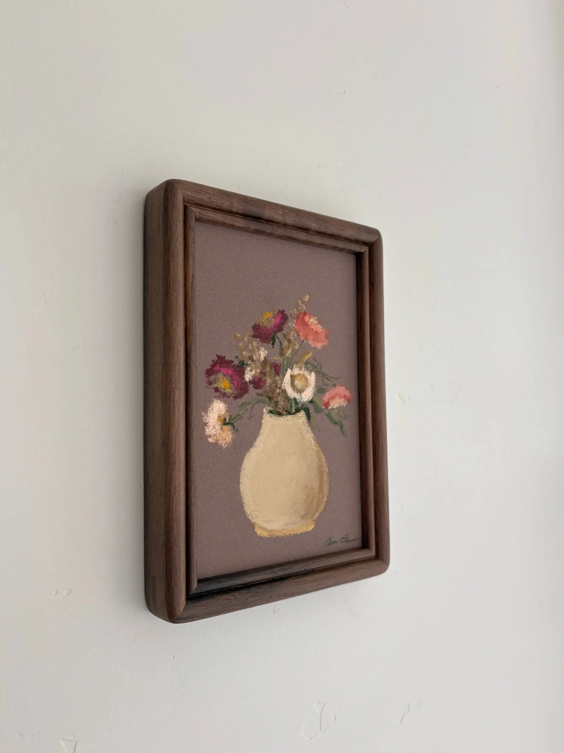 Original soft pastel drawing in a dark wood frame.