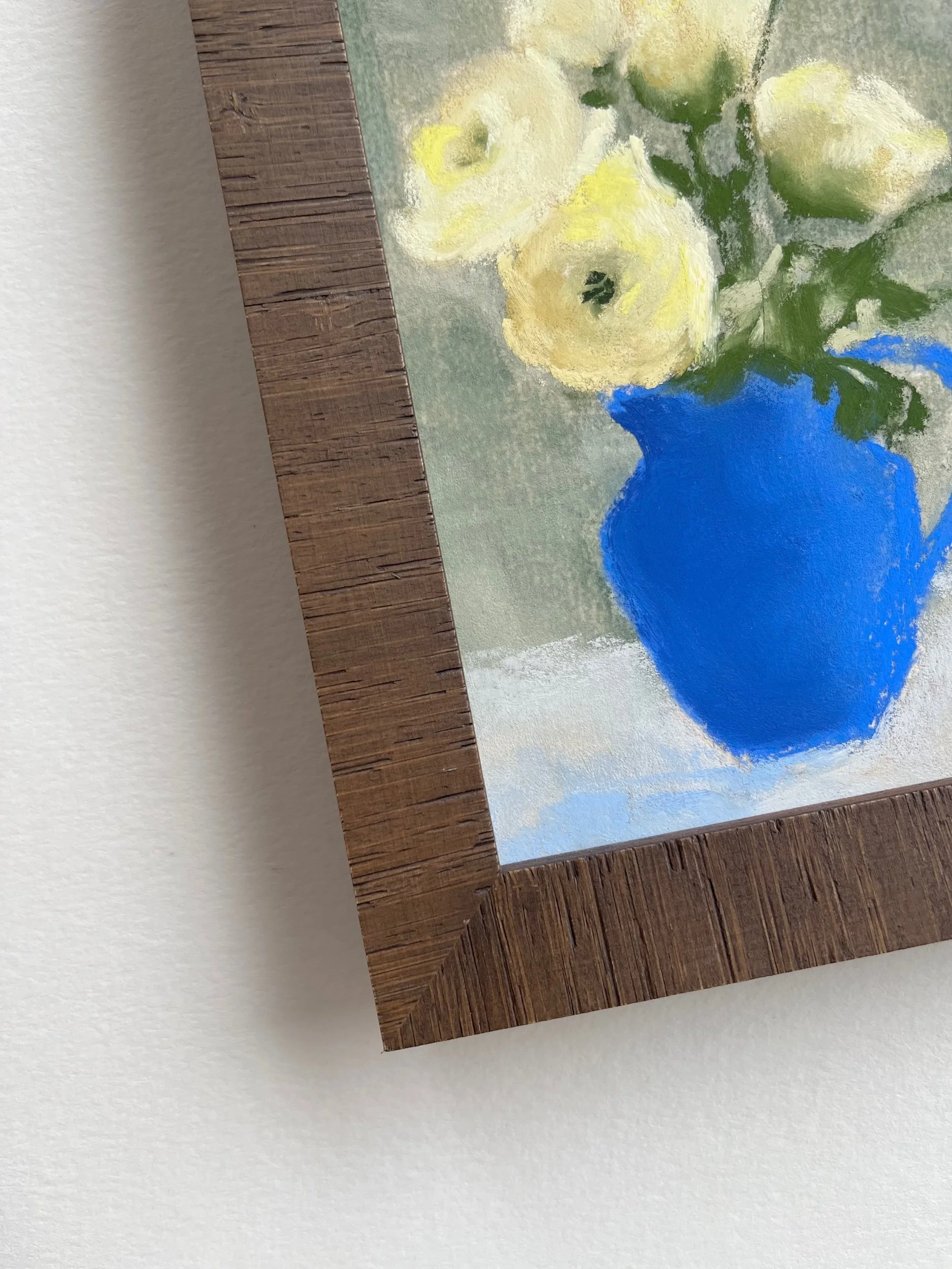 Original soft pastel painting on pastel paper in a brown wood frame.