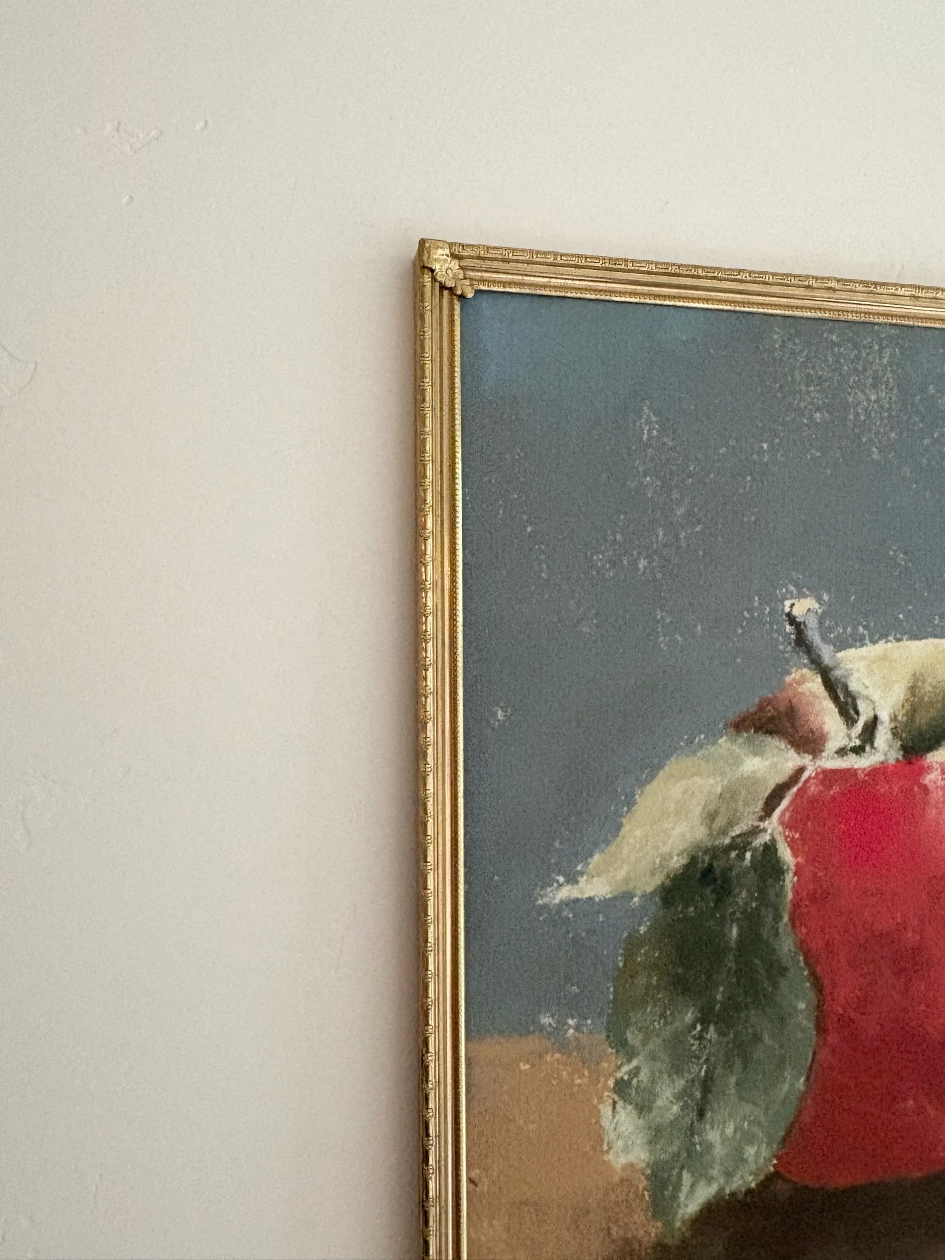 Giclee print in a vintage brass frame. Total dimensions are 8×10 inches. Ready to hang.